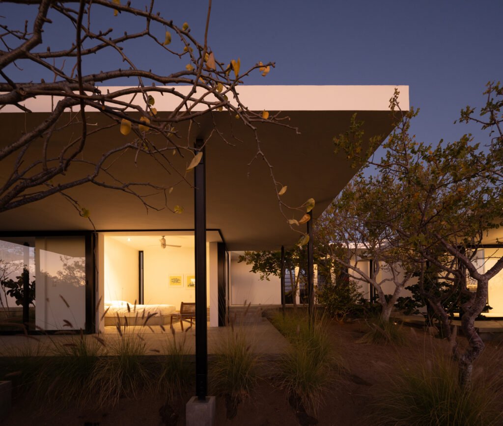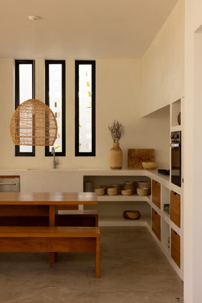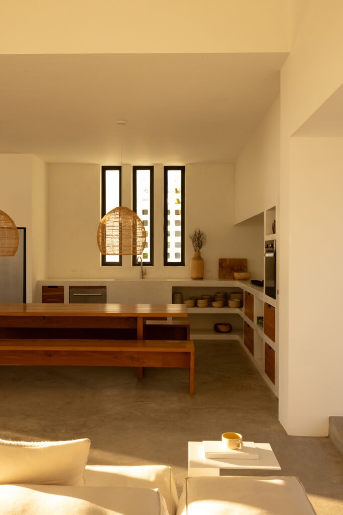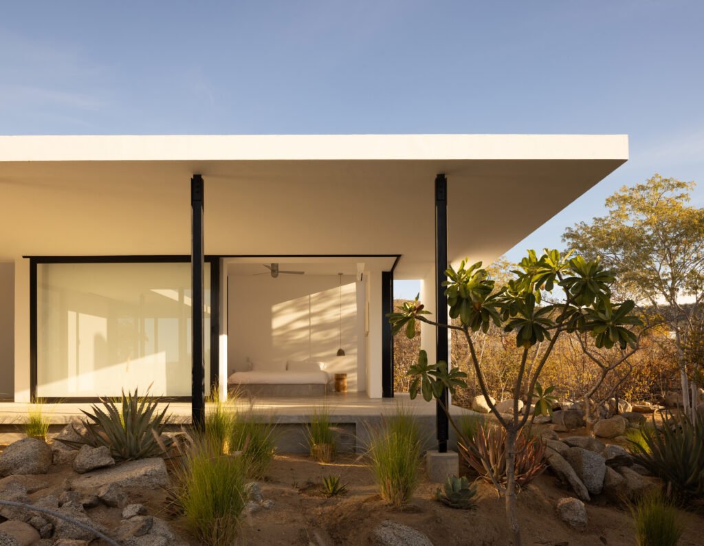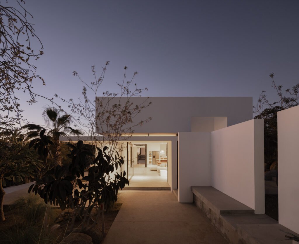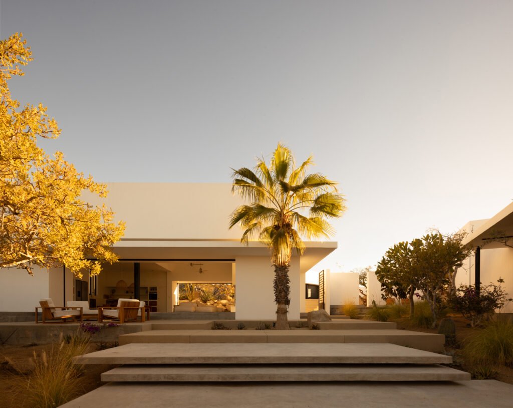 The design blends elements of Mexican vernacular architecture with contemporary lines that convey visual clarity and calm. Given the challenges of obtaining potable water, the project includes a water reuse system that channels treated wastewater to landscape irrigation.