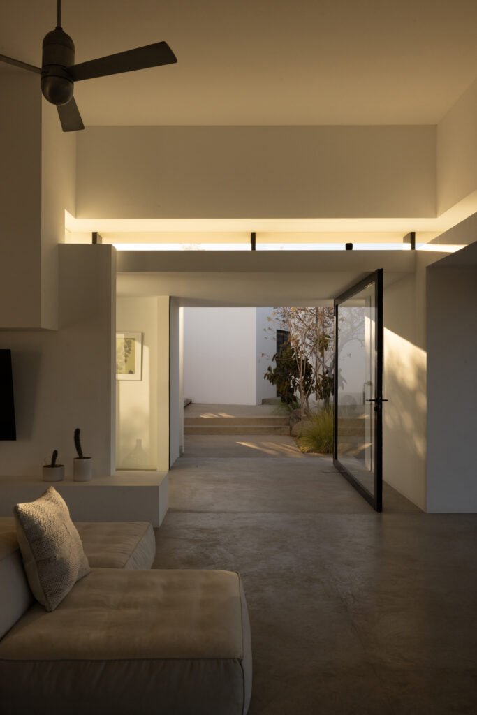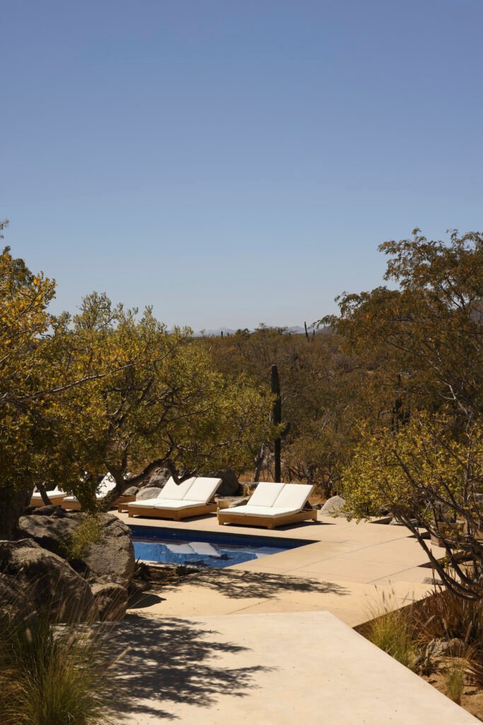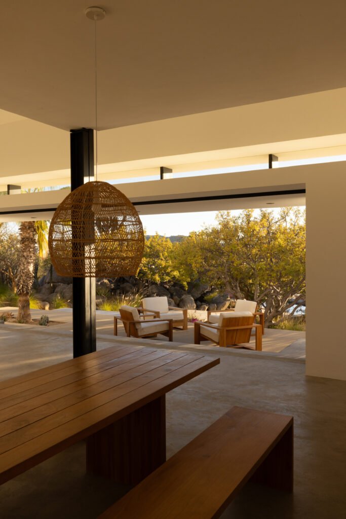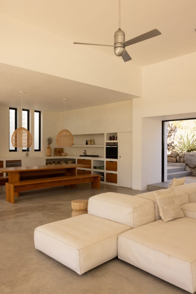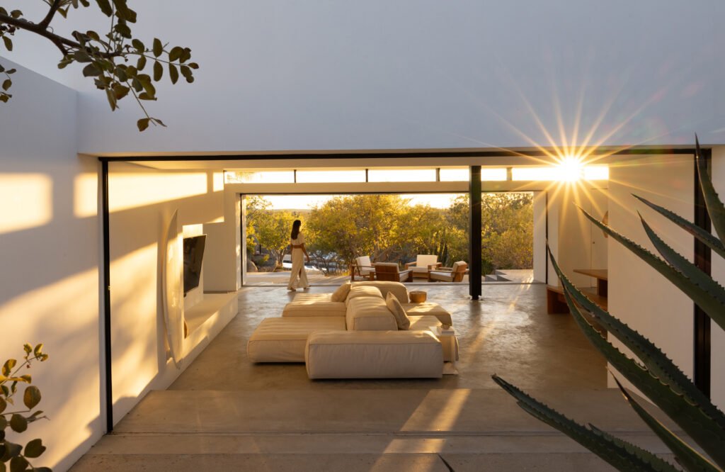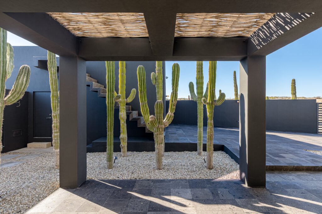 The design blends elements of Mexican vernacular architecture with contemporary lines that convey visual clarity and calm. Given the challenges of obtaining potable water, the project includes a water reuse system that channels treated wastewater to landscape irrigation.